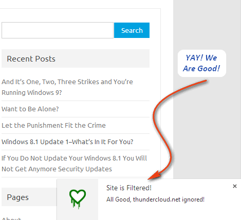 NEW in version 2: the Heartbleed icon is added to Google search results where the site is still affected by the Heartbleed bug. A bleeding heart icon is placed in the browser menu bar. If you happen upon a site that is not patch, you’ll get warning via a popup. You’ll also see a popup indicating the site is “safe”.